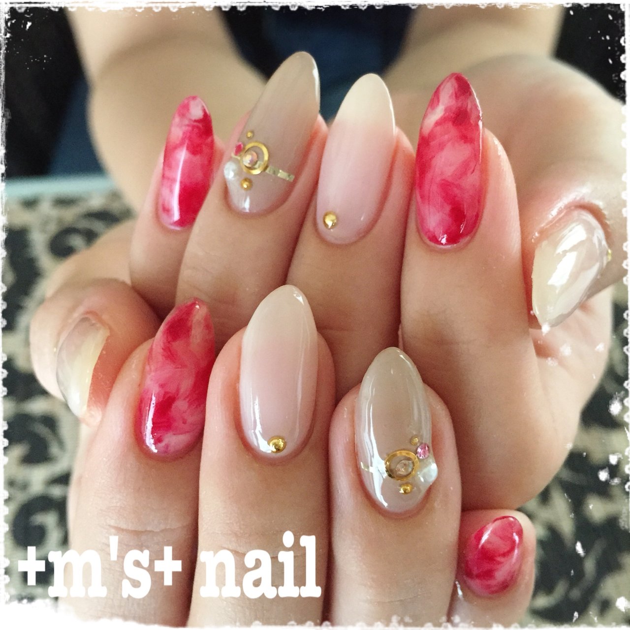 ピンク 赤 マーブルネイル Niki Nail Blog Mili Hair Niki Hair Nail カフェ併設のおしゃれサロン 浜松